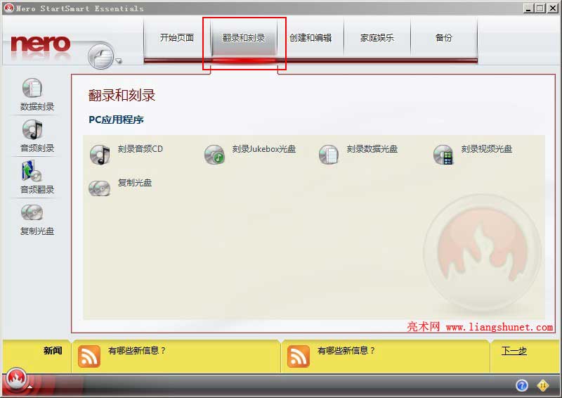1、打开 nero,选择“翻录和刻录”选项卡,如图1所示: