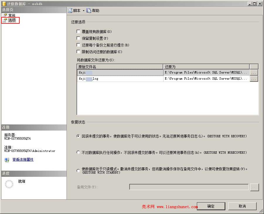 d:\Program Files\Microsoft SQL Server\MSSQL\Data\webdb.mdf:还原后的数据库数据文件;