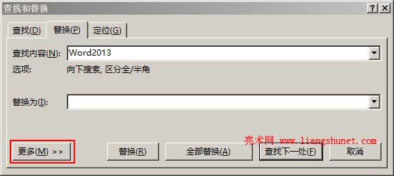 3、单击“更多”,展开后,点击一下“替换为”输入框把光标定位到此(这样在接下来的步骤中选择的字体才会是替换为的),点击“格式”,如图3所示: