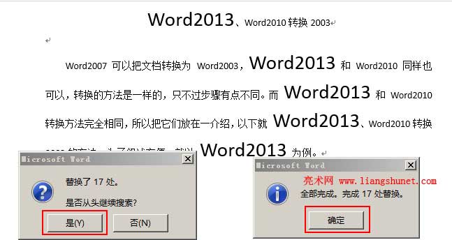 6、点击“全部替换”,如果弹出询问“是否从头继续搜索”,选择“是”,一会后弹出“全部替换完成”提示窗口,单击“确定”替换成功,如图6所示: