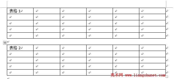 2、把光标定位到两表格之间(即换行符前),按 Delete 键,两张表格已经合并为一张,如图2所示: