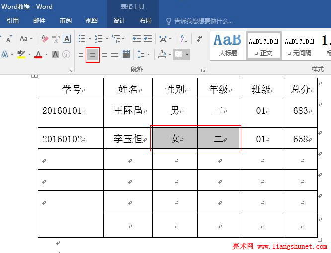 2)单击“居中”图标,则所选行居中对齐,如图12所示: