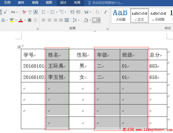 3、也可以同时选中几列,例如:同时选中“姓名、年级和班级”这三列(选中方法为:按住 Ctrl 键,逐一单击要选中列的上边框),如图9所示: