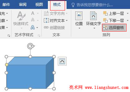1、选中一个图形,使功能区出现“格式”选项卡,选择“格式”,单击“选择窗格”,如图3所示: