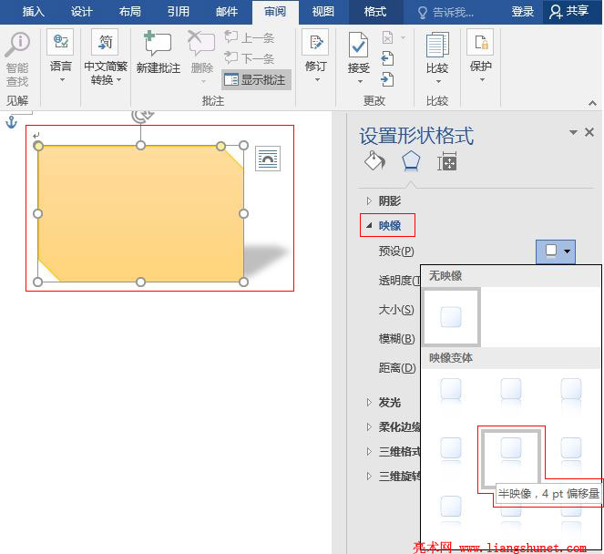 办公软件 > word > word2016入门进阶教程 > 正文4.29 Word 2016 自定义形状效果(阴影、映像、发光)