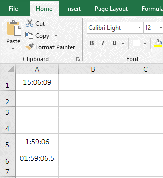 B. The [h] in the format "[h]:mm" indicates that the time is displayed in hours. It can return the time when the number of hours exceeds 24, for example, 23:66(23 hours 66 minutes) returns 24:06(24 hours and 06 minutes) in the demo; [m] in "[m]:ss" means that the time is displayed in minutes, which can return the time of more than 60 minutes, for example, 1:59:06 returns 119:06(119 minutes and 06 minutes) in the demo; [s] in "[s].00" means that the time is displayed in seconds, which can return the time when the number of seconds exceeds 60, for example, 01:59:06.5 returns 7146.50(7146 seconds and 50 milliseconds).