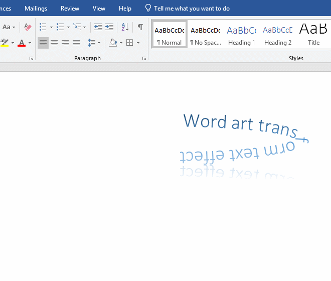 Word art transform text effect (Follow Path, Warp, Arch, Circle, Slant)